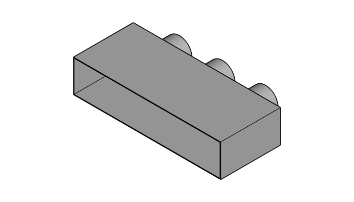 R-PIL3Rechthoekig plenum met 1 zijde open en 3 ronde aftakkingen