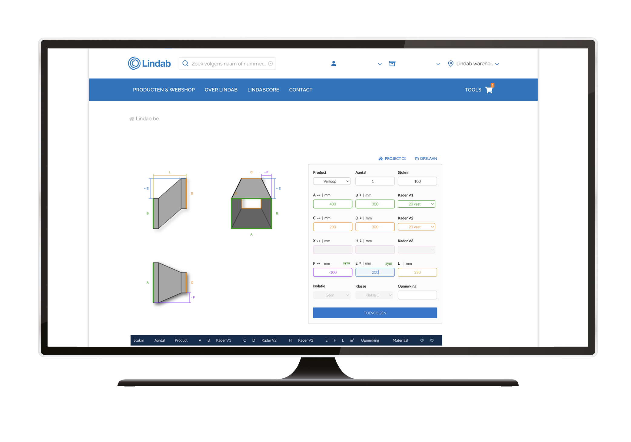 Heeft u geen digitaal plan of werkt u niet met Revit? Geen probleem! Met de intuïtieve LindabCORE tool plaatst u eenvoudig uw bestelling van rechthoekige kanalen en vormstukken. Deze volledig geïntegreerde webshoptool biedt een gebruiksvriendelijke interface waarbij dynamische weergaven zich automatisch aanpassen aan de ingevoerde afmetingen. Dankzij de geavanceerde foutcontrole bent u verzekerd van een nauwkeurige bestelling, zelfs met een basiskennis van de producten. Zo kunt u snel en eenvoudig aan de slag, zonder dat u een expert hoeft te zijn.